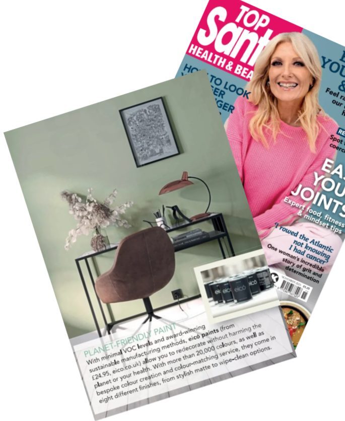 Eico paints were also featured in Top Sante Health & Beauty magazine. The piece discusses creating a cosy autumn home with sustainable, natural products for appliances and décor. It emphasises digital detoxification at home and its importance for wellness, while highlighting calming décor and the award-winning sustainable Eico paints. With over 20,000 colours available, you can select a soothing autumn palette. Use the Helmat emulsion finish for a sleek, modern look or choose Eico eggshell for a durable coat on woodwork and radiators. The article encourages homeowners to revamp their spaces using environmentally friendly products.