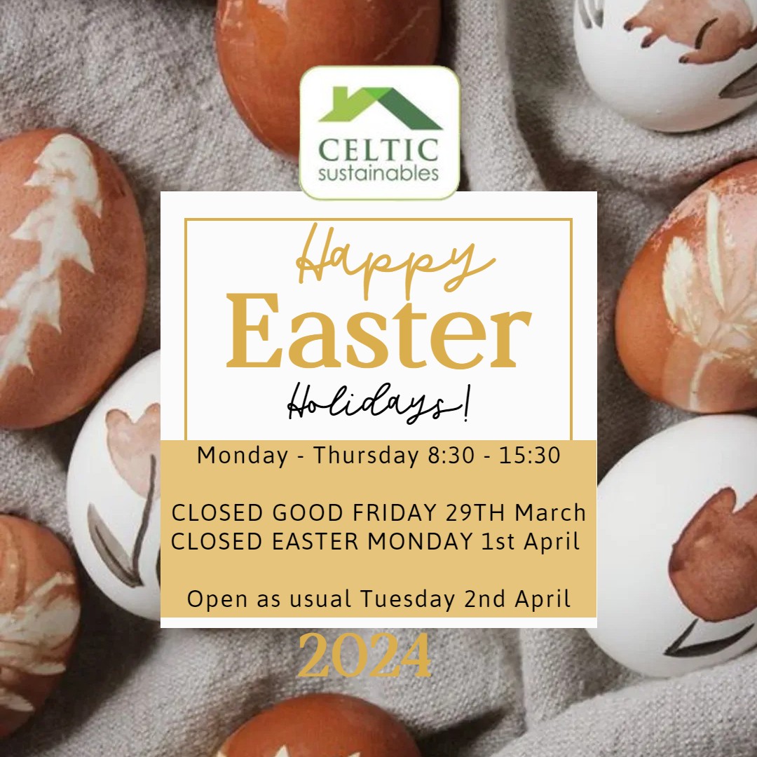 Copyright © 2024 Celtic Sustainables, All rights reserved. Shop Service: We are open weekdays to shop customers. Standard Opening Times: 08:30 to 15:30 - Monday to Friday. Closed Weekends. Closed bank holidays unless otherwise stated. Unit 9, Parc Teifi, Cardigan, Ceredigion, SA413 1EW | 01239 777 009